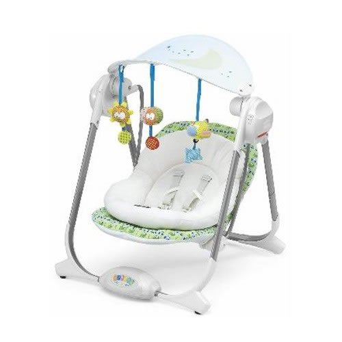 Chicco Polly Swing-Birdland Swing for small babies, ideal for use indoors and outdoors. It has a variable speed motorised rocking movement. The seat can be adapted as the baby grows: The soft reducer in special breathable fabric, holds the newborn baby safe and snugly. This should be removed as the baby grows to give it more room. The electronic console has lovely tunes, relaxing nature sounds and even a heartbeat, which reminds the baby of its prenatal life; it has 6 different coloured lights to relax the baby. The sun hood can be adjusted to protect the baby when used outdoors. Three cute removable toys are attached inside the hood to stimulate the baby’s visual and tactile skills. Key Features: Size when open: 55 x 57 x 63 cms Size when close: 55 x 14 x 67 cms Weight: 6.1 kgs Ideal from birth to 9kgs, approximately 6 months or until baby can sit up unaided.