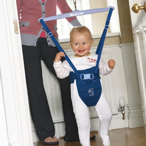 Tippitoes Doorway Bouncer-Blue The 'original' Tippitoes Doorway Bouncer is where it all began for Tippitoes and it has had a glamorous makeover ready for the new year. One of the Nursery Industry products of the year in 2007 and a finalist for Nursery Product of the Year in Practical Parenting Award 10/11, the doorway bouncer is designed to be compact for storage and has a simple, safe clamp for the fitting and removal from a doorway. The rubber extender - unique to Tippitoes, ensures a smooth fluid bounce, limiting jerky movements succinct with bouncers that use a spring. The bouncer has an easy fit harness and has geometrically designed strapping with a fully supportive saddle. The product is easily installed by one adult. New colours to be added to the range soon.