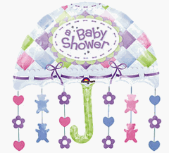 A giant baby shower foil balloon. This is a real favourite and must have for your baby shower party. Requires helium filling. A very stylish decoration for your party room. Lovely pretty pastel colours that will co-ordinate well with any theme you choose. A Shower My Baby Best Seller.