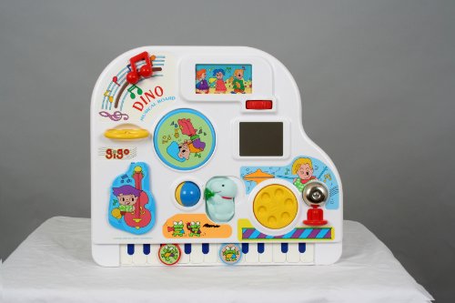 The Dino Musical Board has different features, a Musical pull toy,Turning Plate,a ball,mirror ,turn the knob to see the orchestra parading on