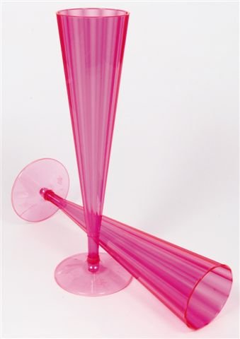 A Pack of 10 Hot Pink stylish & funky plastic champagne flutes ideal for any party. Bevelled plastic pattern.